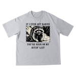 Worn like a warning and stitched with grit, this tee draws from the raw edge of backwoods lore and late-night reckonings. Featuring a rabid raccoon and a crumpled paper list scrawled with names, it nods to those unspoken rules and grudges that never quite fade. Perfect for anyone who knows that in some places, trouble doesn’t bark — it bites.